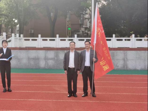 授予了“千班唱红歌,万人健康跑”旗帜。在高举飘扬旗帜的旗手的领跑下,在场学生紧随其后,完成本次健康跑活动。至此,西校区升旗仪式及“千班唱红歌,万人健康跑”活动顺利结束。