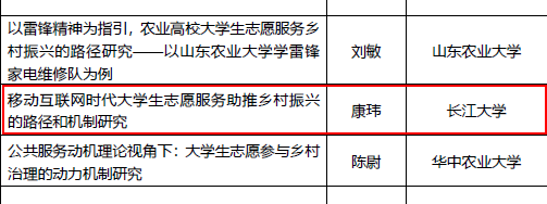 申报的《移动互联网时代大学生志愿服务助推乡村振兴的路径和机制研究》项目获得立项。