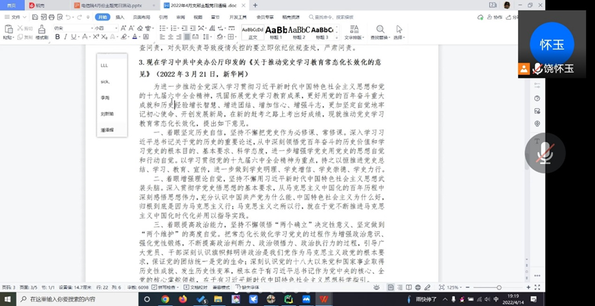研究生采用线上会议的形式开展了4月政治理论学习会议。