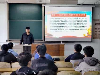 学习会上,孔令健带领2021级成员学习党员政治理论学习相关内容,他通过习近平新时代中国特色社会主义思想,党史学习教育,总体国家安全观,清廉长大及“双一流”建设几大板块,讲述社会主义思想的核心。