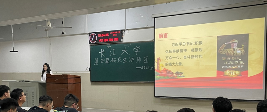 (通讯员 赵怡展/文 尚玉豪/图)4月19日晚7点,长江大学第四届研究生讲师团在12教104以“学习时代楷模张富清,争做时代新青年”为题,面向电子信息大福娱乐城apk