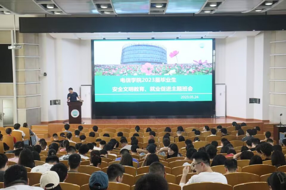 在12教405会议室召开2023届研究生毕业生安全教育大会。学工办主任、2023届辅导员康玮、就业专干王齐禄及2023届全体研究生毕业生参加会议。