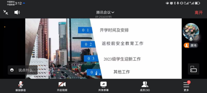 召开了2023级研究生新生入学教育,本次会议线上举行。出席本次班会的有辅导员康玮,2022级研究生学长尚玉豪以及全体2023级研究生新生。会议由尚玉豪主持。