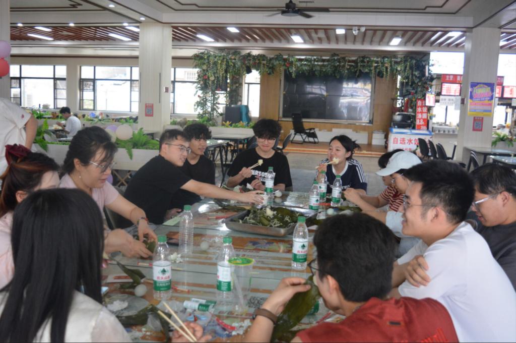 粽香传情,师生们品尝着自己亲手包制的粽子,开启了一场温馨的“成长茶话会”。大家围绕学业压力、职业规划、人际交往等话题畅所欲言。面对学业压力,有同学分享了自己的时间管理技巧和学习方法;在职业规划方面,学长学姐们结合自身经历,为学弟学妹们提供了宝贵的建议;谈及人际交往,大家纷纷讲述着自己在与同学、老师相处过程中的趣事和感悟,互相学习如何更好地沟通与理解。老师们也认真倾听同学们的心声,给予专业的指导和温暖的鼓励,现场气氛热烈而融洽。