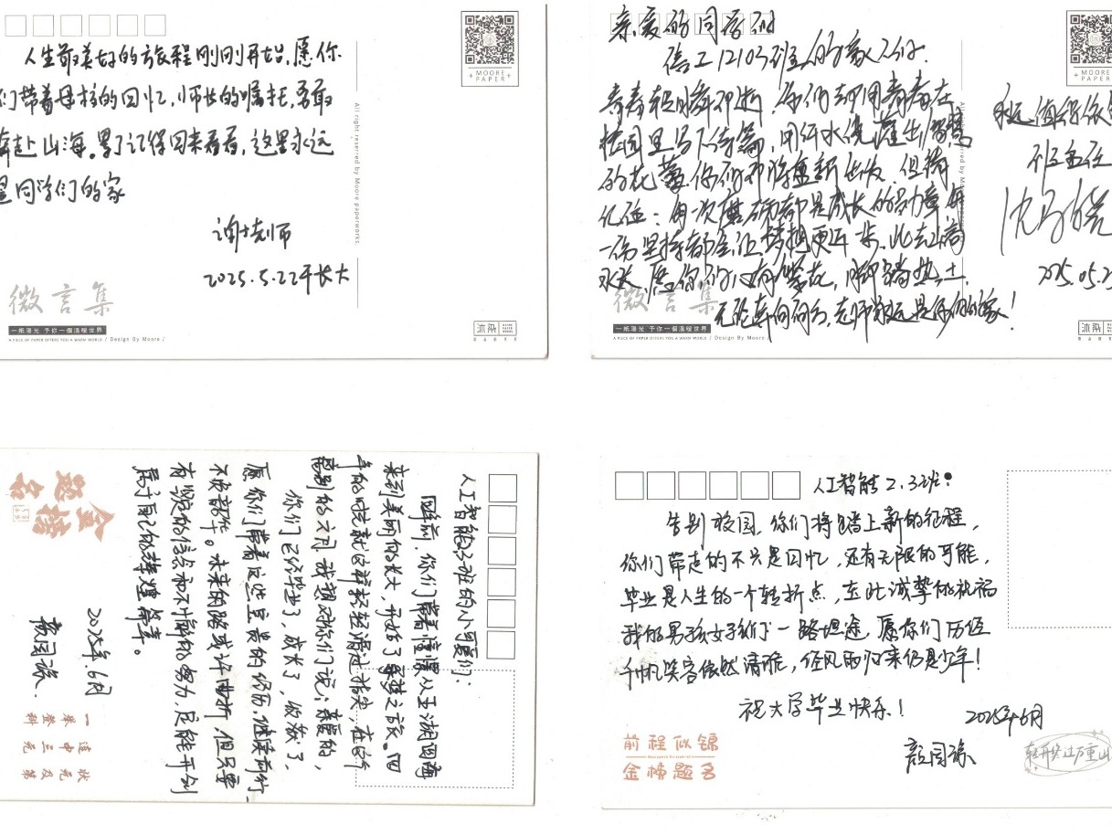 党委副书记张晨露表示:“书信活动是‘谈心育人’的生动实践,师生在笔墨互动中实现了情感共鸣和价值引领。”一封书信,一份传承,在这场充满仪式感的告别中,师生以最质朴的文字诠释了教育的温度,为毕业生上了最后一堂“感恩思政课”。