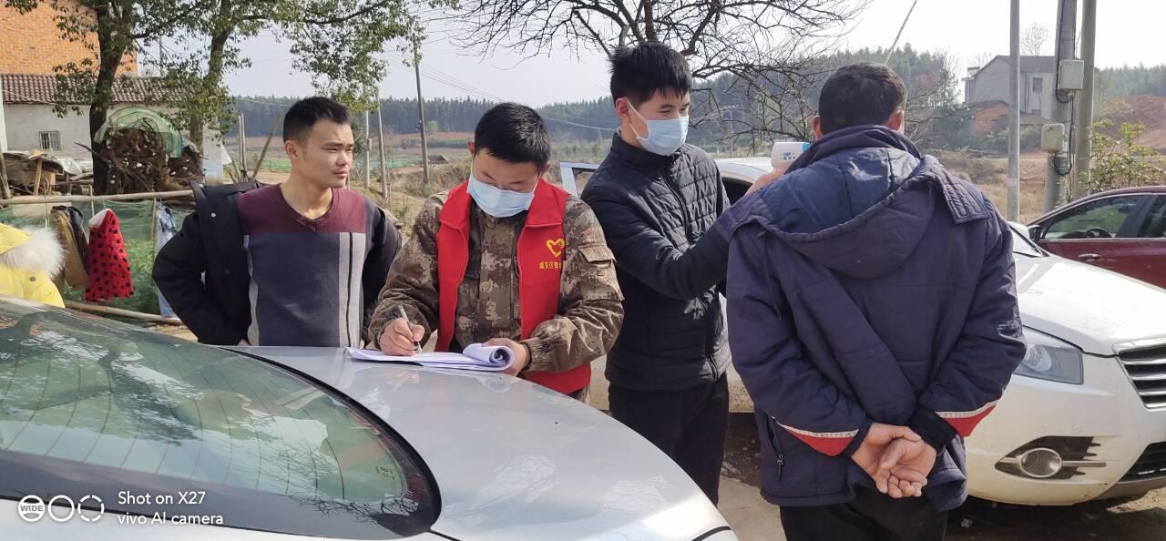 “时间就是生命,疫情就是命令”,放寒假后他回到了老家湖北省咸宁市咸安区汀泗桥镇黄荆塘村。因为武汉与咸宁紧紧相邻,他深知新型冠状病毒在地理环境上通过传播会对咸宁的影响,为了阻断病毒对该地区的传入和影响,更是为了响应省新型冠状病毒肺炎防控指挥部和长江大学新型冠状病毒肺炎指挥部的号召,保护全体村民的身体健康。作为一名光荣的退伍军人,他勇敢地承担起了黄荆塘村的防疫任务,志愿加入村委会的疫情防控组。对重点场所和全村居民家中进行消毒杀菌,每天给全体村民测量、登记体温,建立居民卫生档案卡片,向每家每户宣传、讲解新型冠状病毒感染的肺炎的知识,向村民讲解如何防控新型冠状病毒、如何做好自身的防护,以及遇到发热症状该如何进行应急处理等知识。