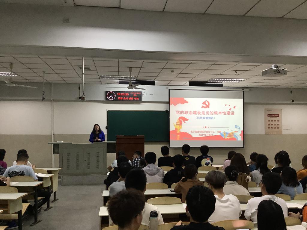 (通讯员 王齐禄)2021年5月25日,电子信息大福娱乐城apk 形势与政策报告会在12教102顺利举行,本次报告会主讲人由大福娱乐城apk 分党委书记刘逸担任,全体学生党员和入党积极分子参会。