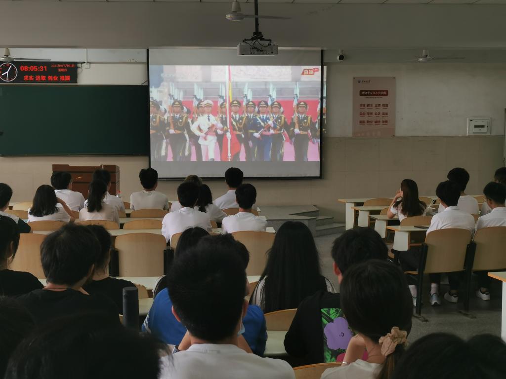 全体学生党员在12教104观看庆祝中国共产党成立100周年大会,共同见证中国共产党成立100周年这一伟大的时刻。