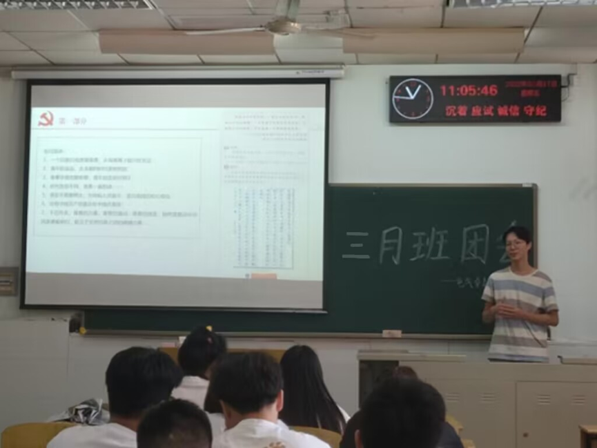 3月27日上午,电卓11901团支部在东校区13教D126举行班团会。在班团会上,同学们深入开展了党史学习教育。本次党史教育以党的百年奋斗重大成就和百年历史为核心,增加了党的红色精神、长征精神的宣讲。吴雨秦等同学用融媒体展示、沉浸式讲述等多种新媒体展现形式,声情并茂地带领大家深入学习了党的百年奋斗历程,深刻感悟新时代党和国家事业发展的伟大成就;持续深化习近平总书记关于青年工作的重要思想学习,深刻感悟党领导中国青年运动的光辉历程。