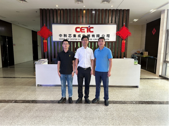 在中科芯集成电路有限公司(58所),副总经理薛亮重点介绍了公司的发展历程、使命愿景、科研成果、产业化发展之路以及中国电科(无锡)集成电路产业园、智慧中科芯园区的建设情况和公司中长期发展战略规划。罗明璋表示希望将来充分利用双方技术、人才及联合创新平台优势,建立良好的沟通和交流机制,能力互补、共同成长,并诚挚邀请公司副总经理薛亮校友回母校参加合并组建20周年主题活动。
