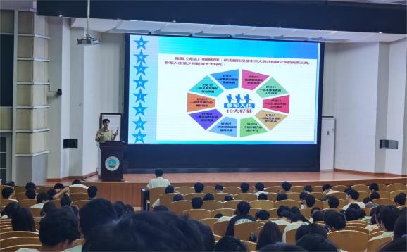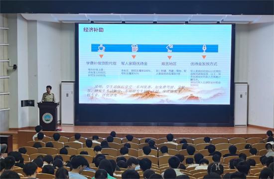 周丽军同学以国防的重要性为切入点,从征兵工作的意义、基本条件、组织流程、优待政策四个方面详细解读了大学生应征入伍的政策法规。同时他强调征召大学生参军入伍是党中央、国务院、中央军委作出的重大战略决策,对改善兵员素质、提高部队战斗力、促进青年学生的成长成才具有重要意义。同时,向全体2022级同学具体介绍了报名征兵的流程。