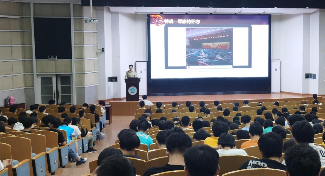 然后,他从自身经历出发,分享了军旅生涯由学生成长为优秀士兵的心路历程,从追逐梦想、军营生活、奋斗青春等方面,讲述了自己在部队的点滴故事,应征入伍不仅锻炼了坚强的意志,炼就了强健的体魄,更使他们懂得了感恩父母、感恩学校、感恩国家,并鼓励大家让青春在部队闪光、让梦想在军营绽放。