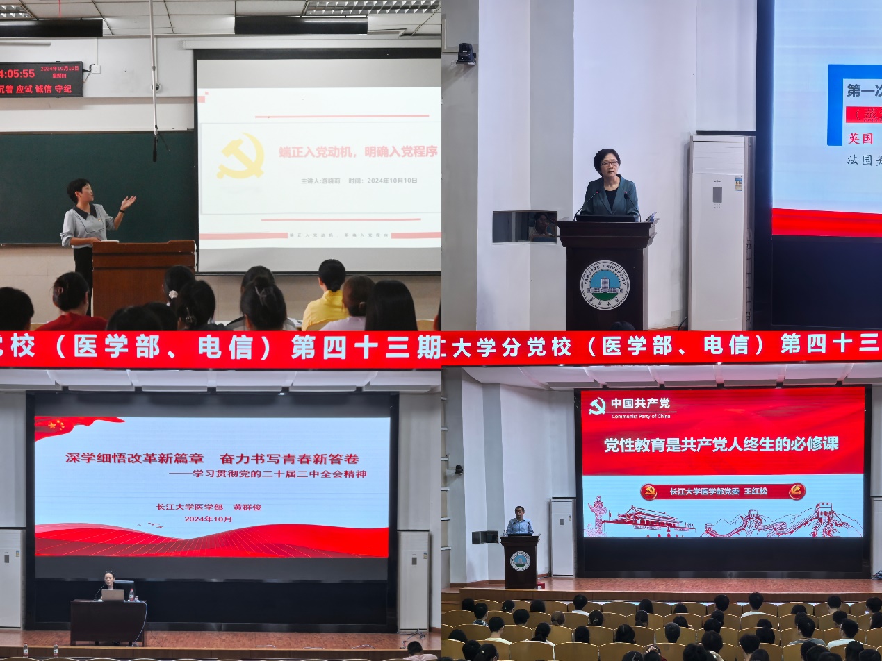 党委书记刘小燕以《从历史演进中理解中国式现代化》为题作报告,从中国式现代化的历史渊源讲起,全面生动地介绍了中国式现代化的特征、本质要求、战略安排、重大原则和历史意义等问题。医学部党委书记黄群俊以《深学细悟改革新篇章 奋力书写青春新答卷》为题,从主题的由来、重大意义、部署安排和创新特点等方面深入解读了党的二十届三中全会精神。医学部正处级组织员王红松以《党性教育是共产党人终生的必修课》为题展开授课,阐述了党性和讲党性的内涵,带领大家学习了习近平总书记关于加强党性修养的重要论述,强调了加强党性修养的主要途径。