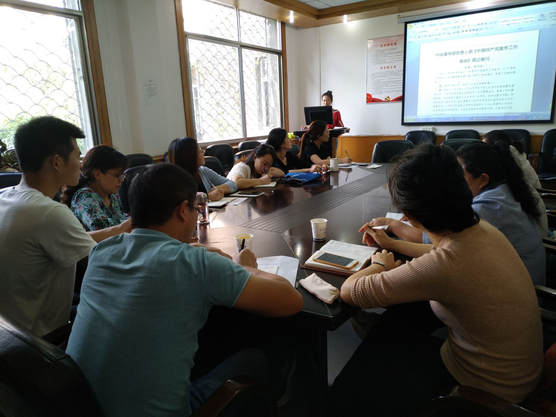 与会同志认真学习了中央宣传部负责人就《中国共产党宣传工作条例》答记者问、《关于深化新时代学校思想政治理论课改革创新的若干意见》、《中美贸易摩擦的缘起、影响和未来走向》、《直面现实 负重前行——党委书记朱业宏在中层干部培训研讨会上的讲话》、《不忘初心 牢记使命 扎实推进“双一流”建设——校长冯征在2019年暑期工作研讨会上的讲话》、《长江大学大福娱乐城apk