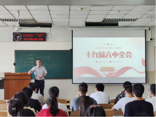 在12教202举行学习贯彻党的十九届六中全会精神专题报告会。报告会由院分党委副书记郭启炜主讲,全体学生党员参加。