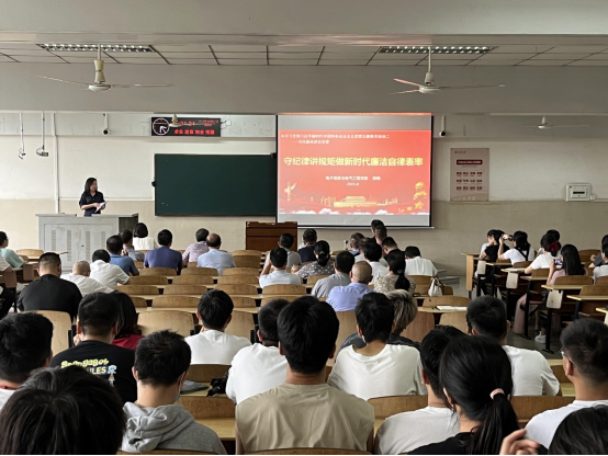 党委书记郭梅以《守纪律 讲规矩 做新时代廉洁自律表率》为题,为全体师生党员讲授了一堂主旨鲜明的廉政专题党课。