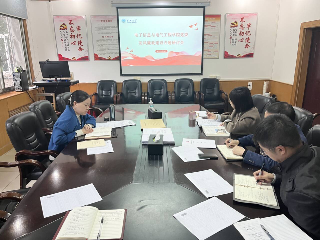 党委组织开展2023年下半年党风廉政与师德师风建设专题研讨会。副院长魏勇、周箩鱼,党委副书记张晨露,院长助理蒋涛参加学习研讨,会议由党委书记郭梅主持。