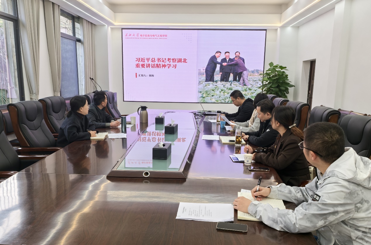12月2日上午,党委理论学习中心组在10教205会议室专题学习习近平总书记考察湖北重要讲话精神。学习结束后,与会成员围绕深刻领会习近平总书记考察湖北重要讲话的丰富内涵、精髓要义和实践要求,结合学习工作实际,就如何贯彻落实交流了心得体会,郭梅、魏勇、周箩鱼做了重点交流发言。