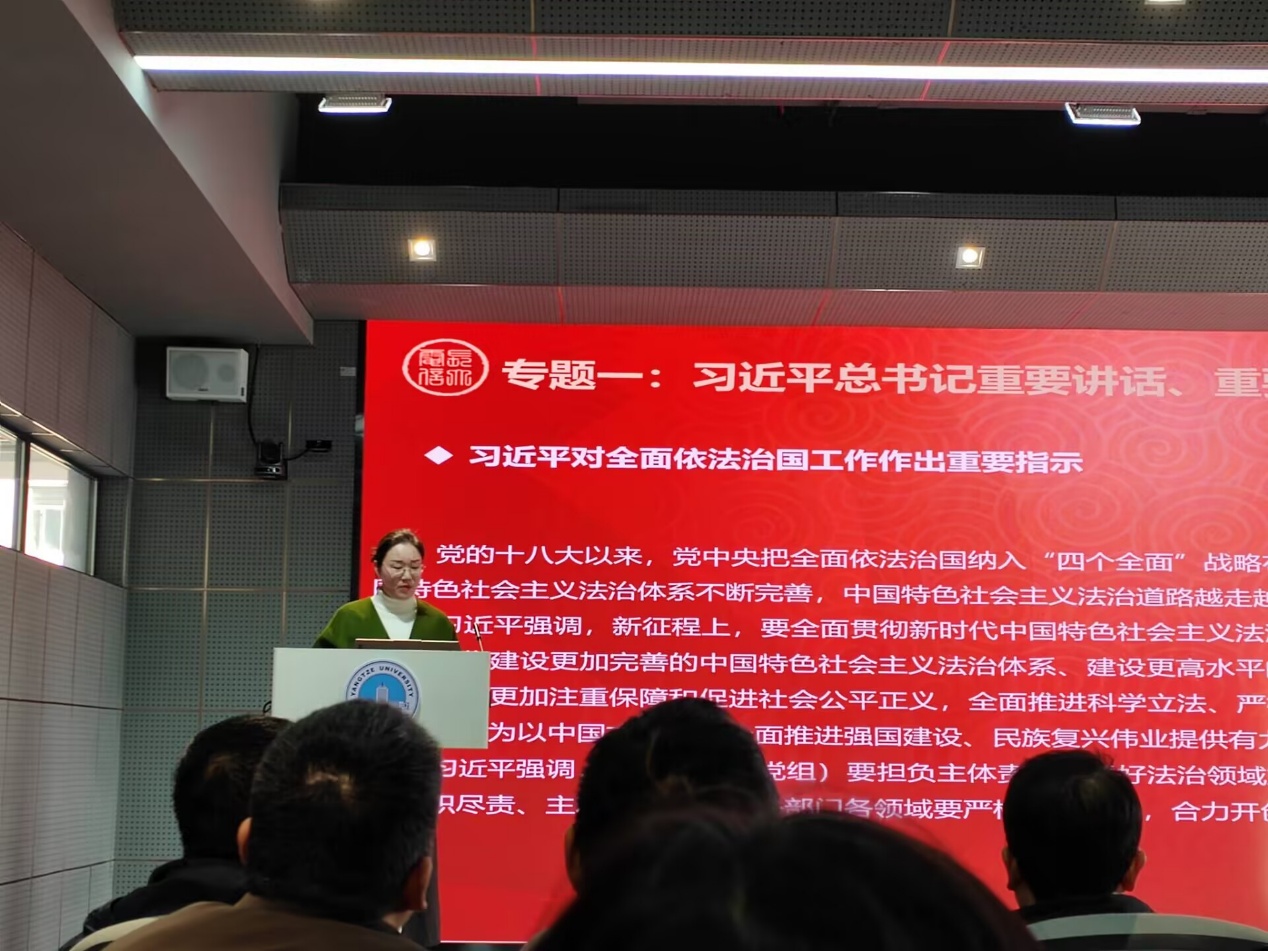 在16教A313举行教职工大会,党员代表李山山老师在会上带领全体教职工开展政治理论学习。会上集中学习了习近平总书记在中共中央举行纪念胡耀邦同志诞辰110周年座谈会上的重要讲话、习近平总书记对全面依法治国工作作出重要指示、《求是》杂志发表习近平总书记重要文章《推进党的自我革命要做到“五个进一步到位”》《因地制宜发展新质生产力》、习近平总书记在广东考察时关于深入学习宣传贯彻党的二十届四中全会精神的重要指示批示精神以及习近平总书记在浙江工作期间关于意识形态工作的重要论述和习近平总书记在中共中央政治局第二十三次集体学习时的重要讲话精神,还学习了《中共长江大学委员会关于深入学习宣传贯彻党的二十届四中全会精神的通知》等内容。学习结束后,学校互联网与信息中心有关老师向全体教师开展了网络信息安全知识宣讲。