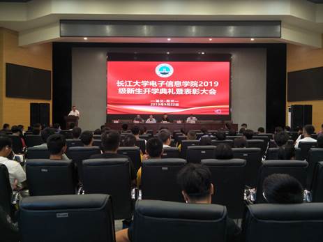 2019级新生开学典礼暨军训表彰大会于农科大楼1058报告厅成功举行。院长孙祥娥教授、党委书记刘逸、党委副书记郭启炜、电子信息系主任邹学玉教授、仪器系主任吴爱平副教授、电气系主任杨旭辉副教授及2019级全体本科生出席此次会议。会议由郭启炜副书记主持。