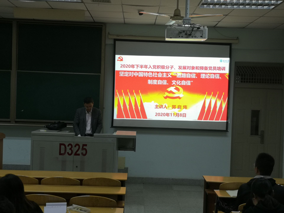 党委副书记郭启炜以坚定对中国特色社会主义“道路自信、理论自信、制度自信、文化自信”为题,为2020年下半年入党积极分子、发展对象和预备党员讲专题党课。