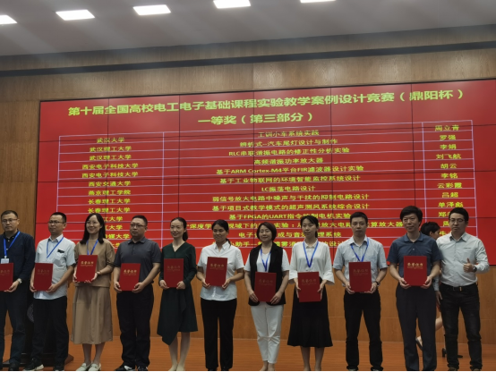 全国高校电工电子基础课程实验教学案例设计竞赛(鼎阳杯)由教育部电工电子基础课程教学指导中国电子学会和国家级实验教学示范中心联席会电子学科组联合举办,旨在进一步推动电工电子基础课程实验教学内容研究探索、工程实践、自主创新的改革,促进实验教学水平与教学质量提升,推广各高校实验教学优秀教学资源共享,激发广大教师开展实验教学建设与改革热情。本次竞赛吸引了来自武汉大学、西安交通大学、武汉理工大学等众多高校代表的参与,从华北、北部、西部、中南、华东5个赛区231所高校707个实验教学案例中评选出150个教学案例参加决赛,最终评选出全国一等奖作品39项,二等奖53项、三等奖作品58项。