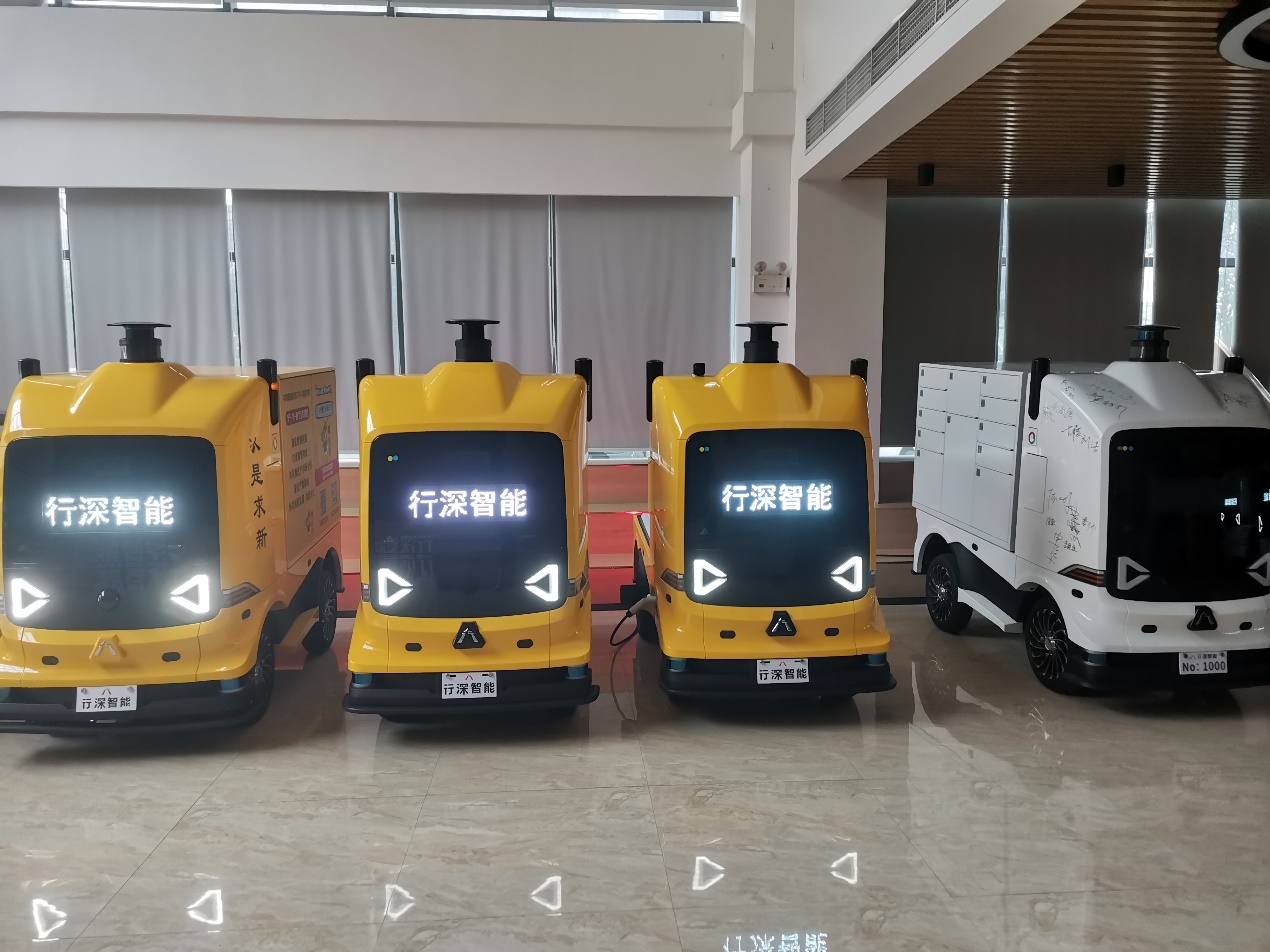 现场参观了行深智能智慧校园应用经典案例之一——无人驾驶小车。目前行深智能无人配送车已经进入全国四十多所高校提供无人配送服务,包括快递无人配送、零售商品无人配送,学生只需手机下单即可预约取件,大大缓解了学生排长队集中取快递现象。此外还有无人驾驶校园防疫消杀车,旨在助力打造安全、有序的智慧校园。