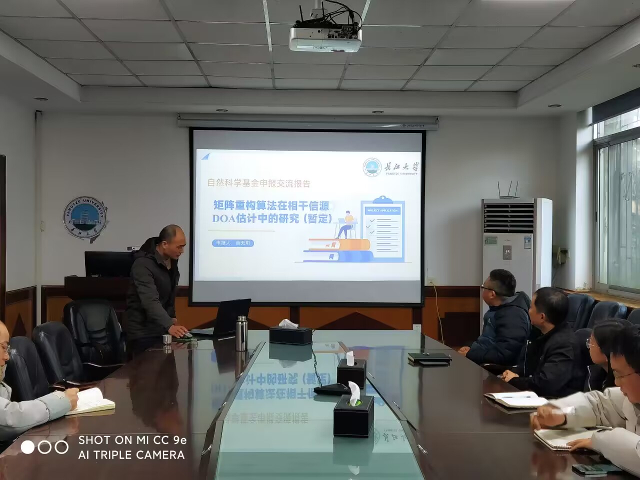 工作,主要研究方向为阵列信号处理,数字波束合成,高分辨率距离成像。他从项目研究的目的与意义、内容与目标、方案与可行性等多个维度进行了汇报。之后罗院长和老师们从修改题目、凝练内容、捋清思路、加快进展,及突出研究的工程背景等方面给章博士提出了宝贵的建议。