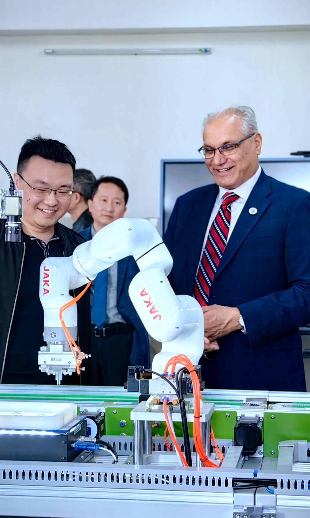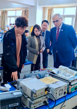 随后Shahzad Ahmad参观了示范中心创新创业实验室,学生向Shahzad Ahmad介绍并展示电子设计大赛相关作品并与Shahzad Ahmad开展交流讨论。