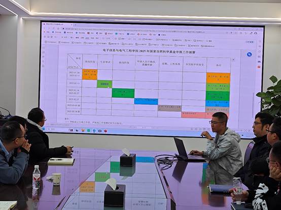 组织科研教师于10教205会议室召开了2025年国家自然科学基金申报启动会,会议由周箩鱼副院长主持,邀请科发院负责自科类重大项目的尹艳树副院长莅临指导并做报告。