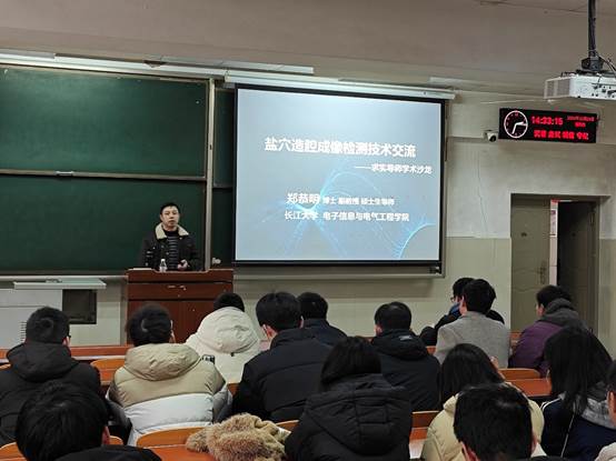 魏院长向与会同学简短介绍了郑恭明老师的研究方向和研究成果后,郑老师作了题为《盐穴造腔成像检测技术交流》的讲座。郑老师从盐穴储气库国内外的现状谈起,目前国内盐穴储气库建设及水溶采矿多为层状盐层,盐岩品位低且夹层多,如何高效利用含盐地层、造出体积大且稳定好的盐腔是盐穴溶腔设计的目标。他重点介绍了单井模拟建腔过程中,腔体形态测量的设计方案,实现过程与测试结果,以及在方案设计过程中遇到的问题及解决方法。