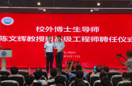 报告会后,举行了校外博士生导师聘任仪式,学校正式聘请陈文辉为长江大学校外博士生导师,罗明璋院长为陈文辉院长颁发聘书,并合影留念。